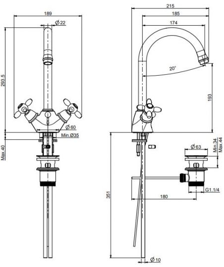 Размер:двухвентильный кран