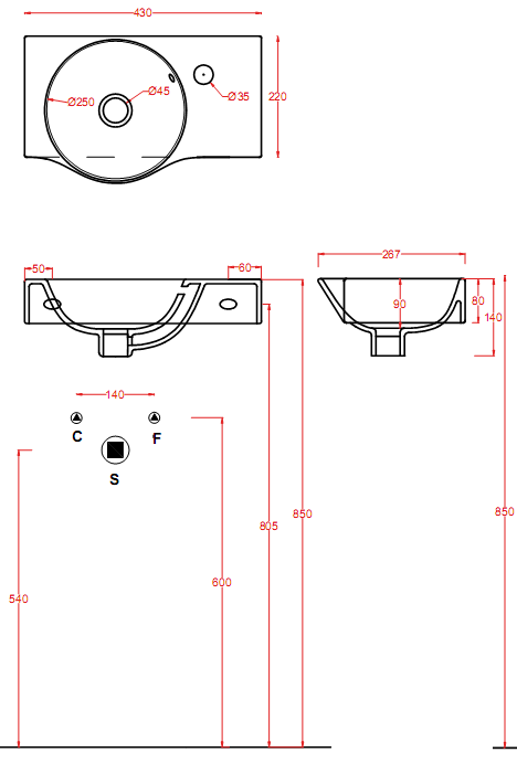 Тип раковины Подвесная