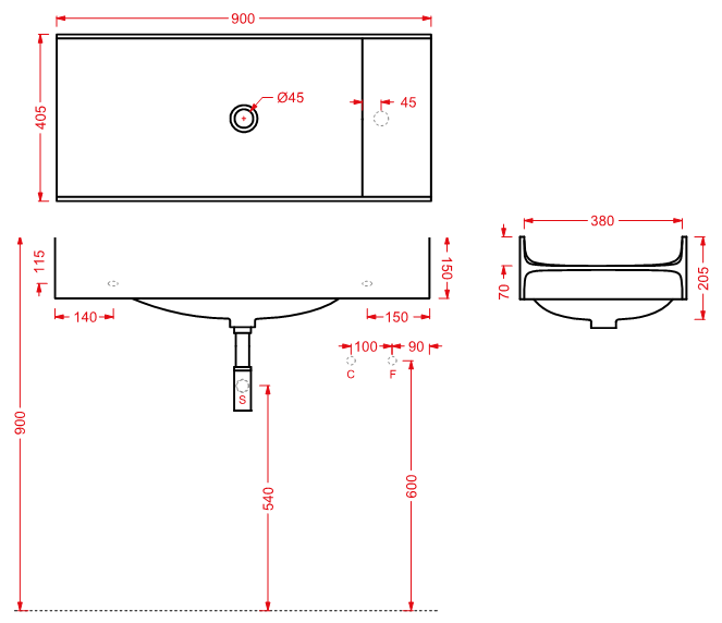 | Тип раковины | Подвесная |