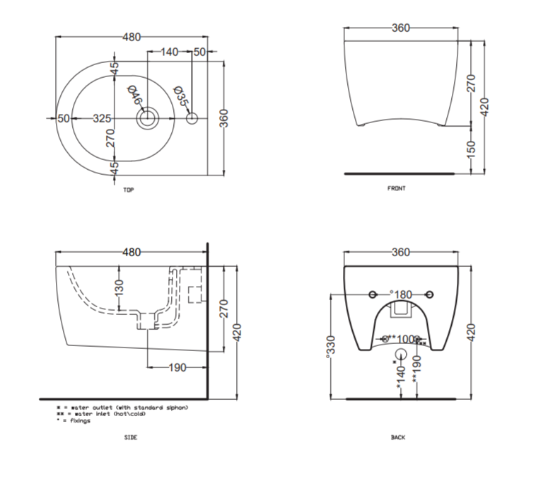 | Тип биде | Подвесное |