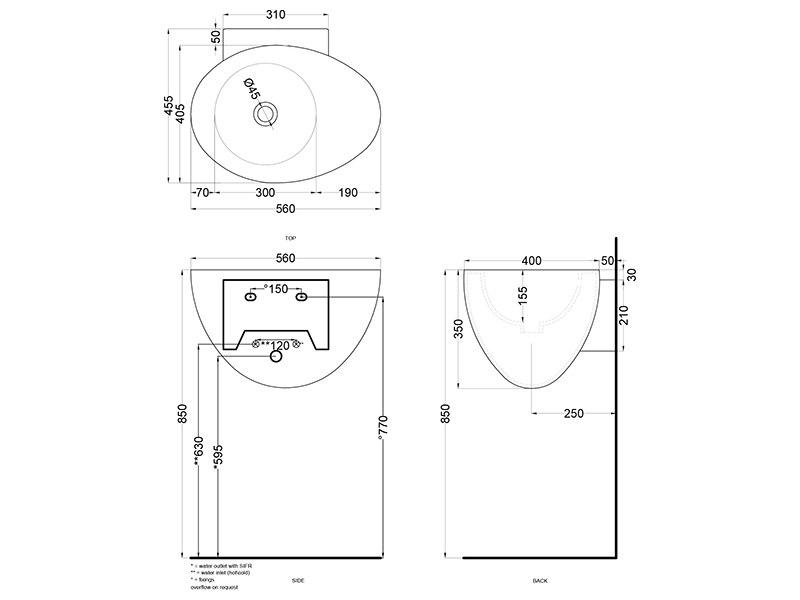 | Тип раковины | Подвесная |
