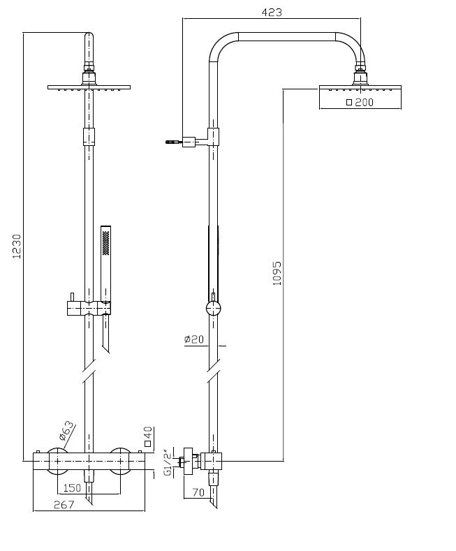 Душевая колонна с термостатическим смесителем, душевой лейкой Z94268 и латунным ручным душем Z94178.