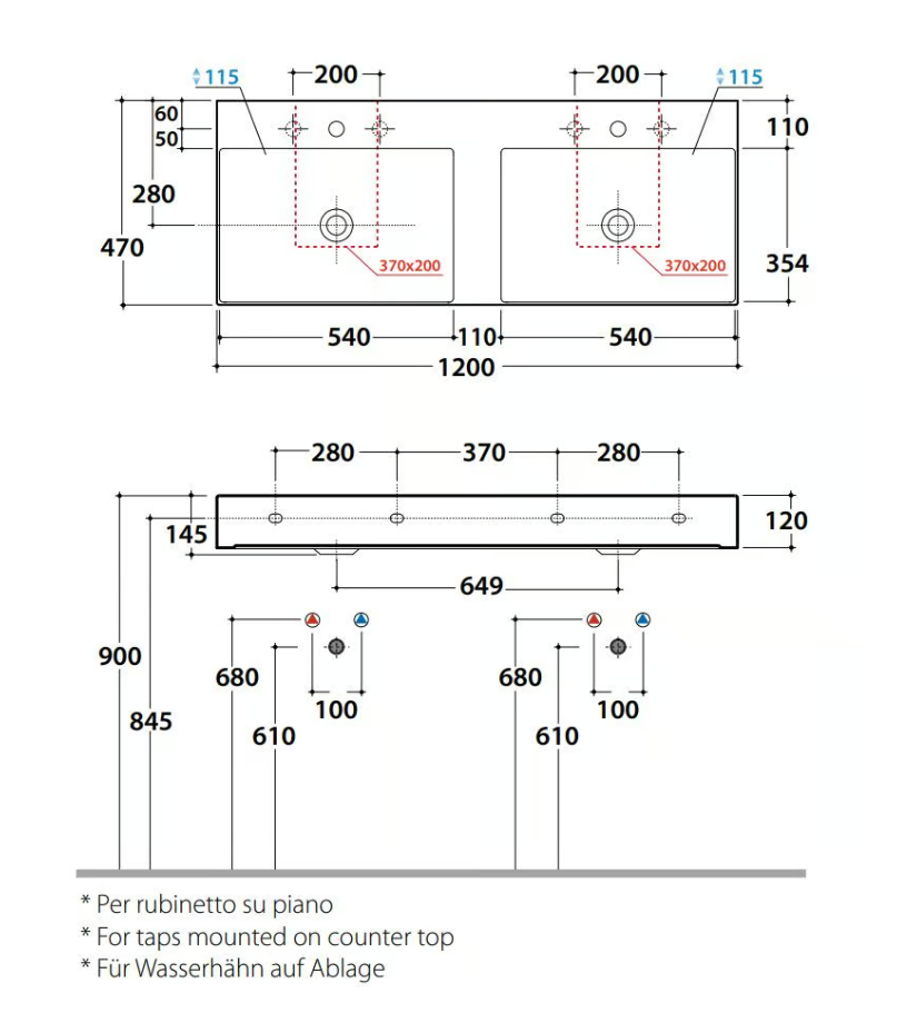 | Отверстия под смеситель | С 3 отверстиями |