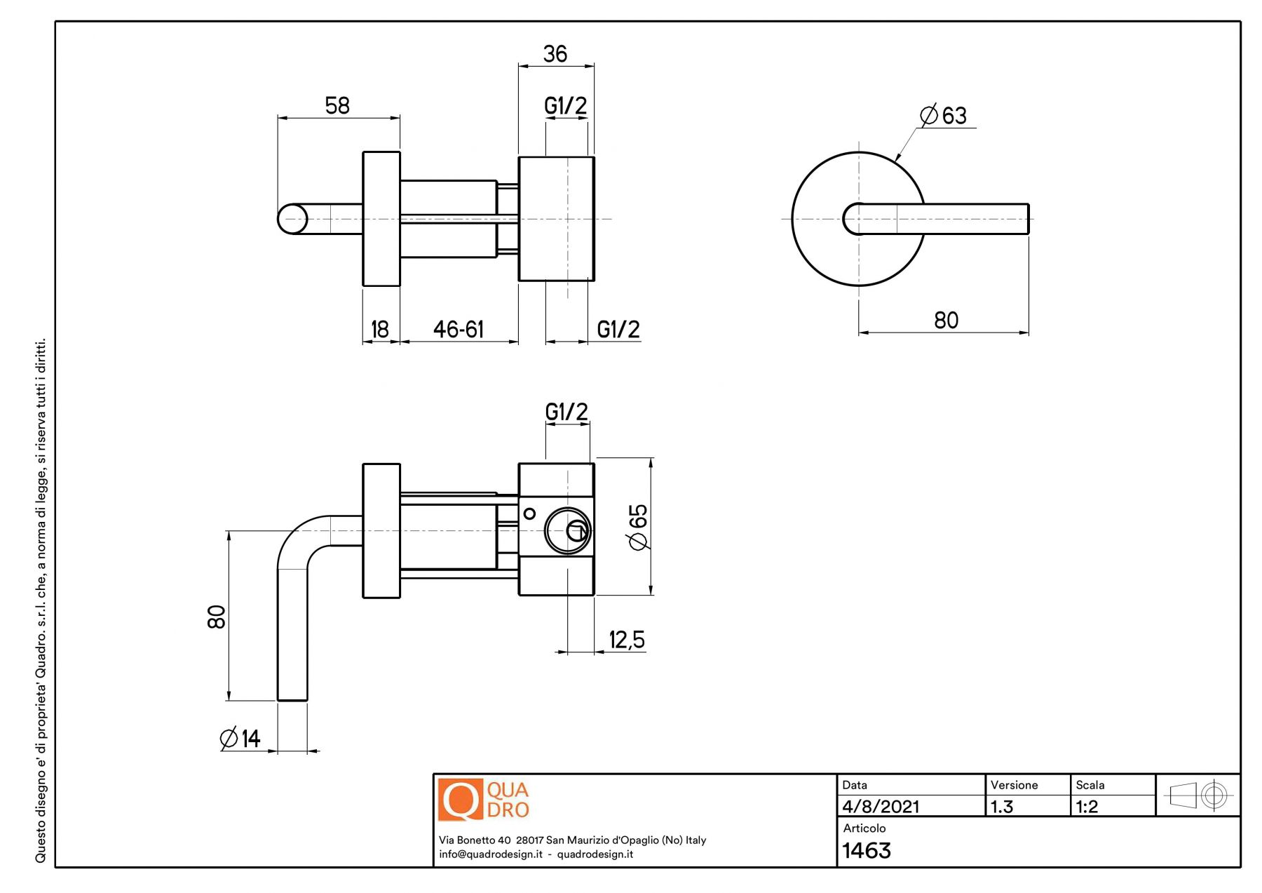 Двусторонний настенный дивертор Quadro design Levo 14 64 AS