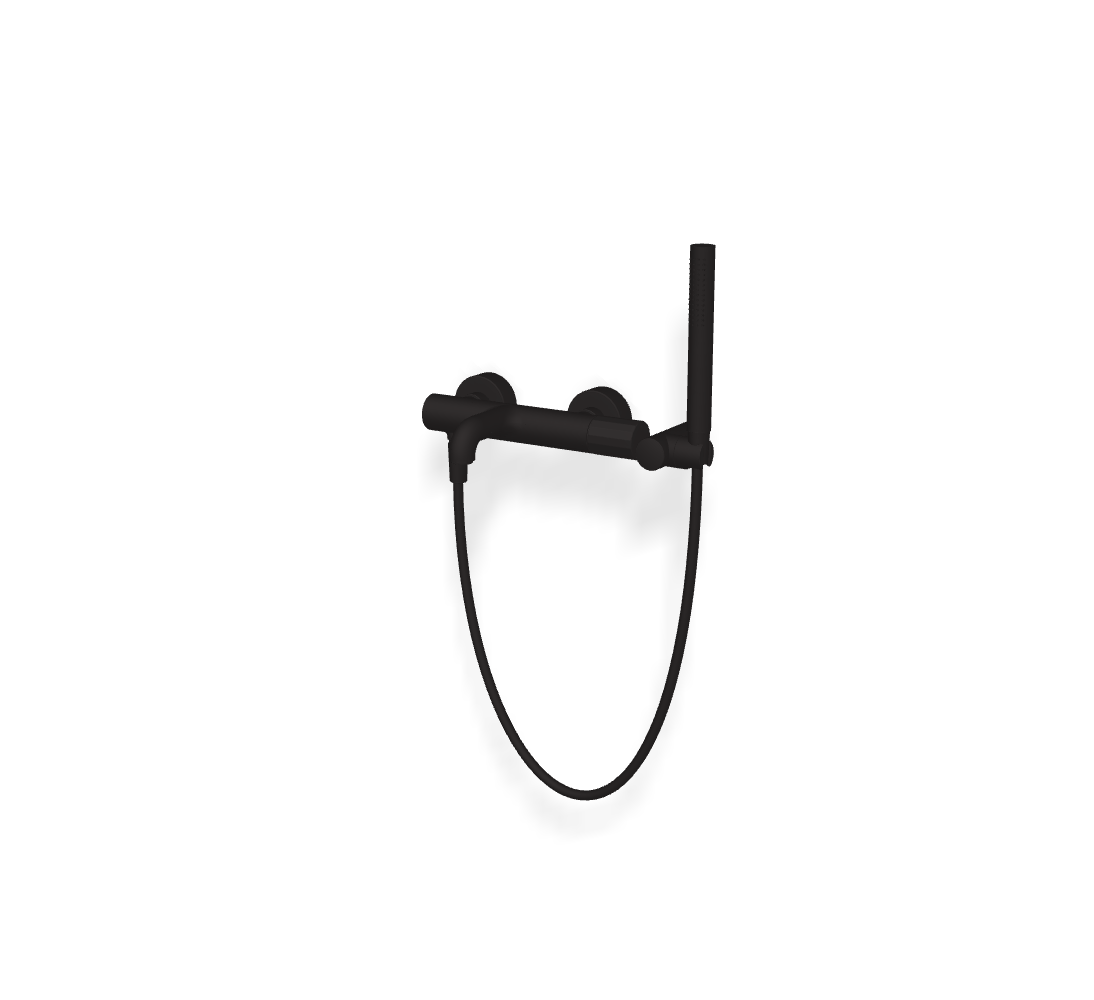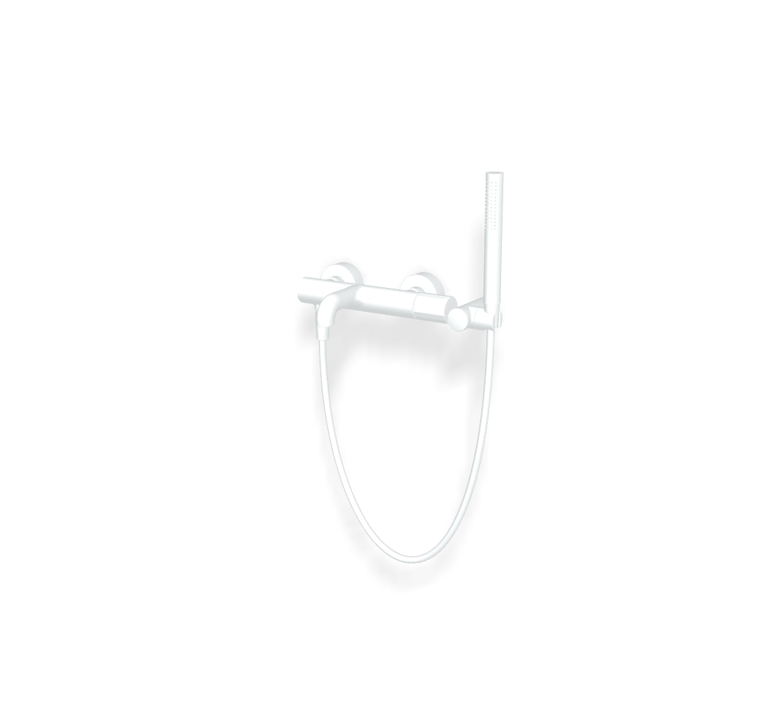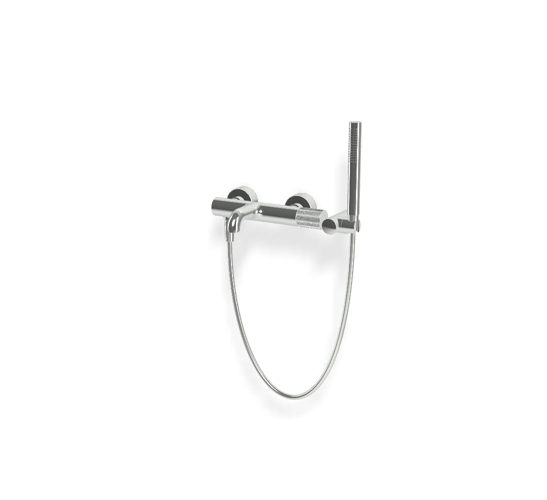 • 2 подвода воды 1/2 с эксцентриком • держатель для душа • Ручной душ с защитой от извести анти-кальк • кнопочный переключатель • Гибкий шланг хромалюкс 1500 мм