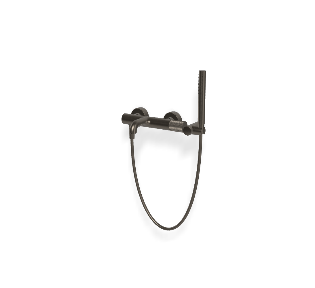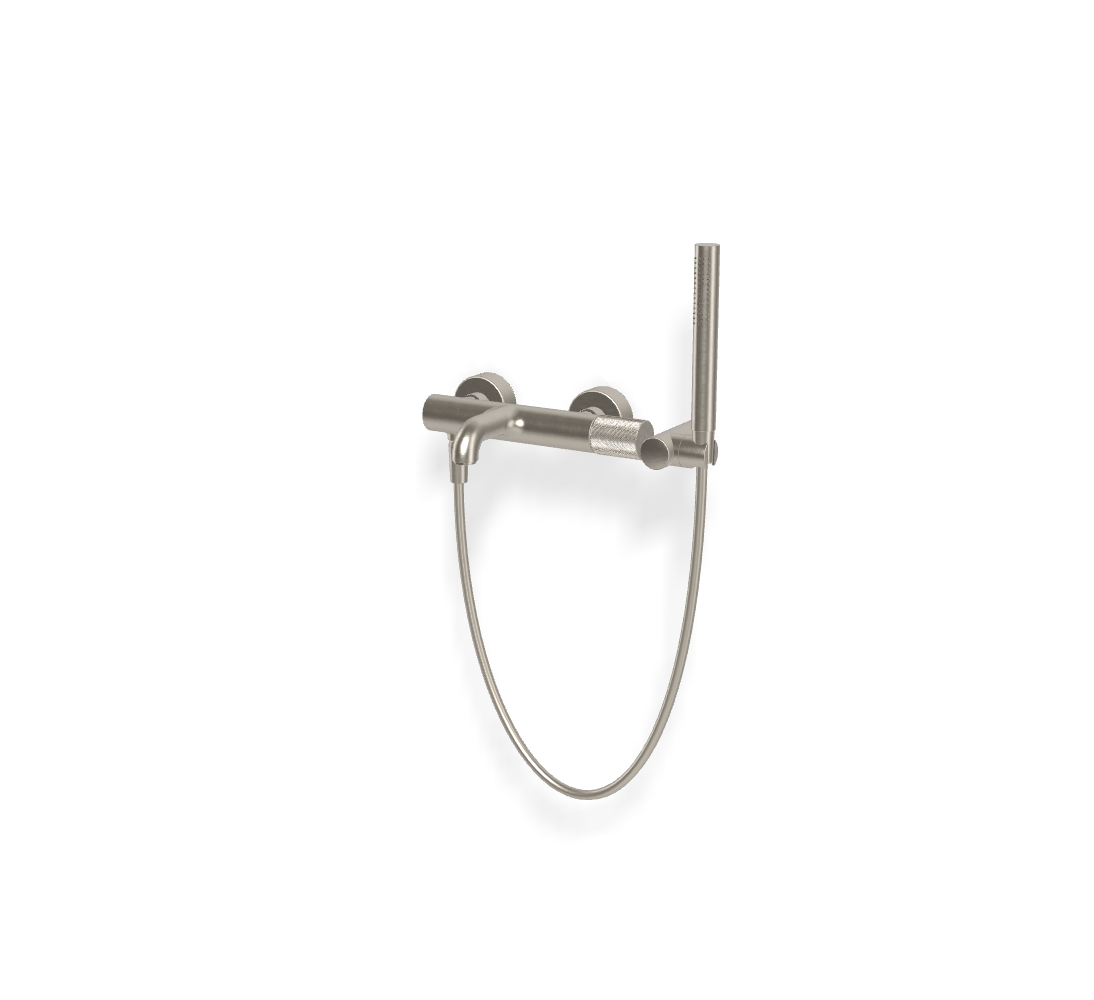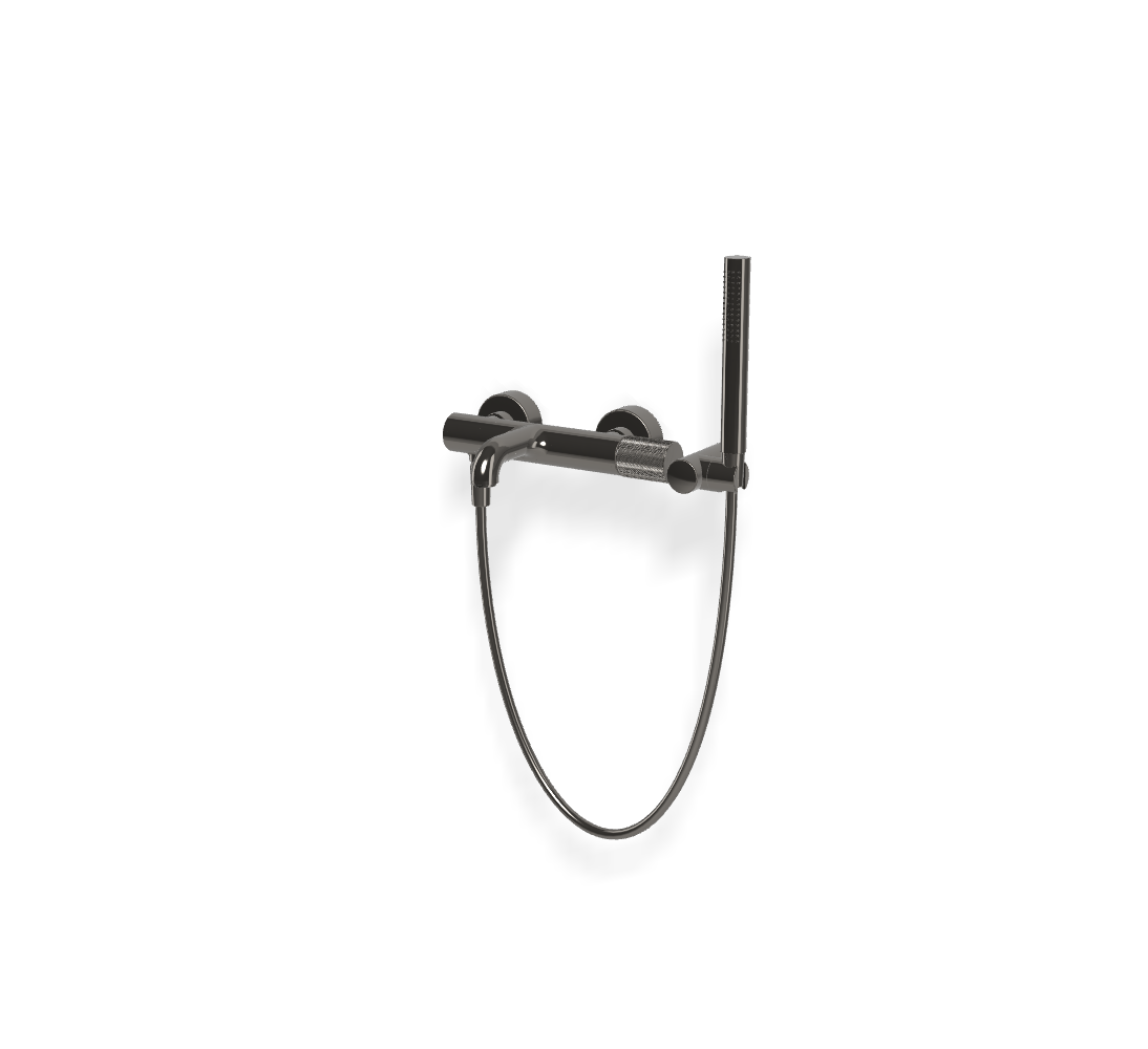 • 2 подвода воды 1/2 с эксцентриком • держатель для душа • Ручной душ с защитой от извести анти-кальк • кнопочный переключатель • Гибкий шланг хромалюкс 1500 мм
