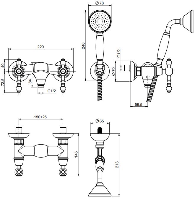 • ручной душ из латуни