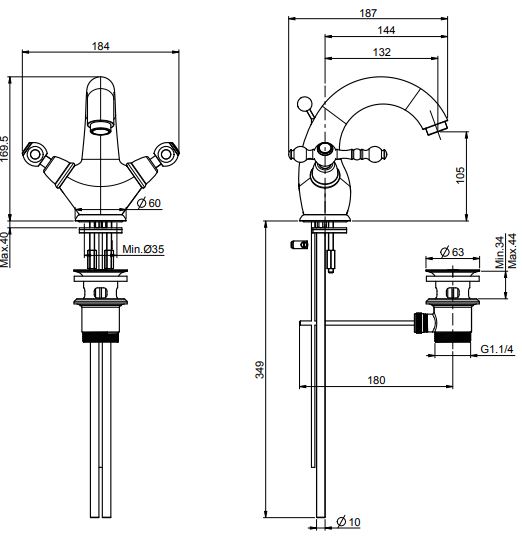 • донный клапан 1"1/9