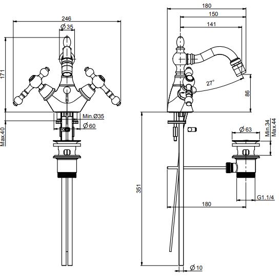 | Монтаж | На горизонтальную поверхность (раковину, столешницу, борт ванны, биде) |
