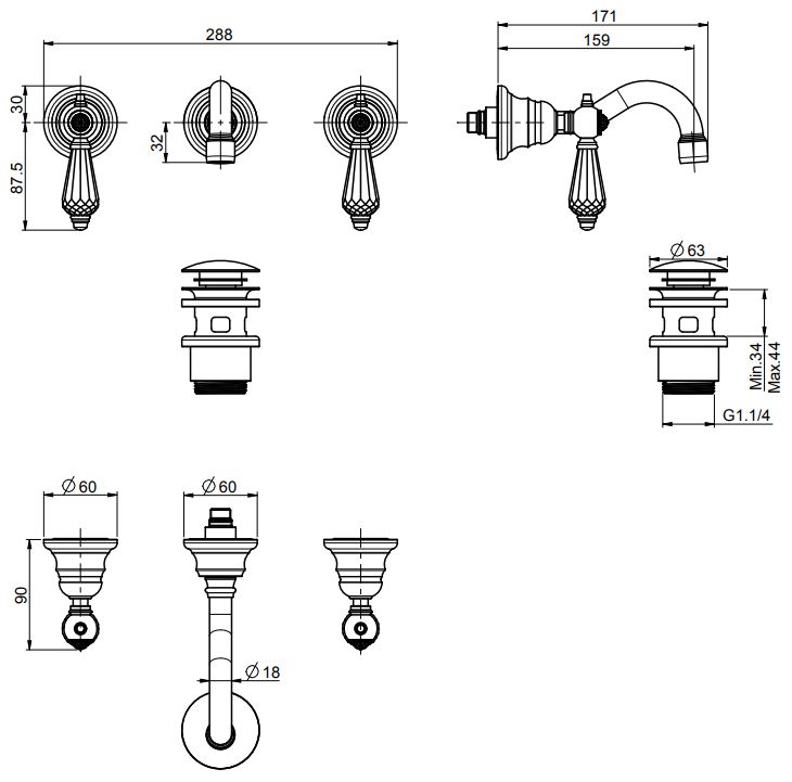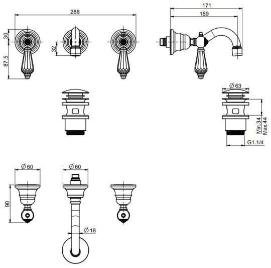 • донный клапан click-clack 1``1/4 с переливом