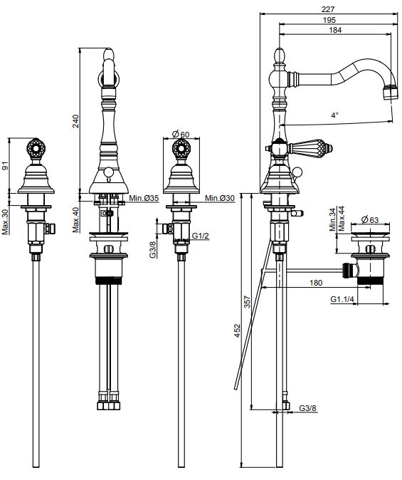 | Отверстия под смеситель | С 3 отверстиями |