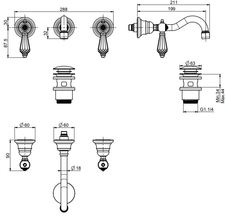 • донный клапан click-clack 1``1/4 с переливом