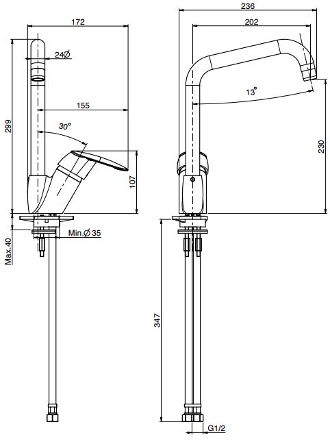 | Монтаж | На горизонтальную поверхность (раковину, столешницу, борт ванны, биде) |