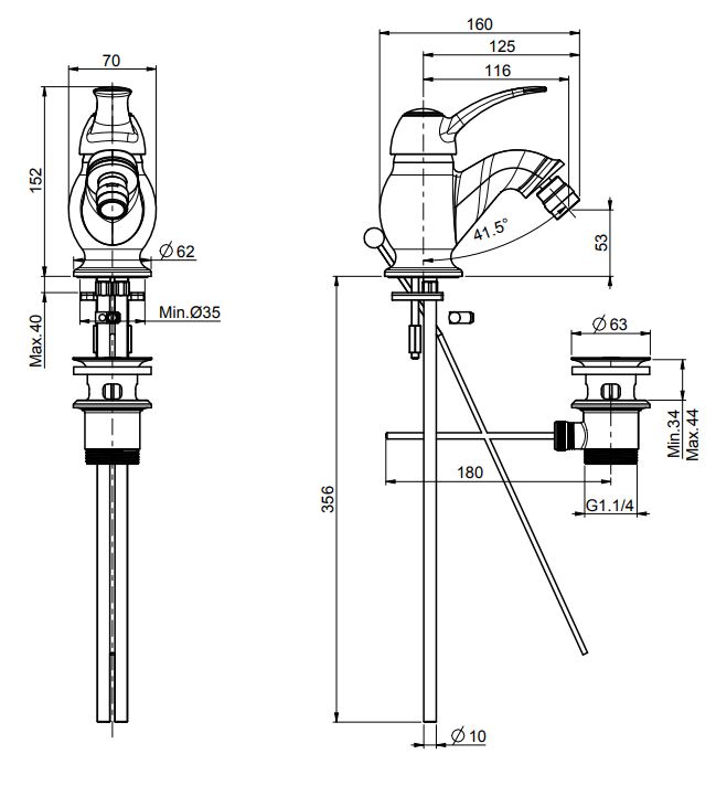 | Монтаж | На горизонтальную поверхность (раковину, столешницу, борт ванны, биде) |