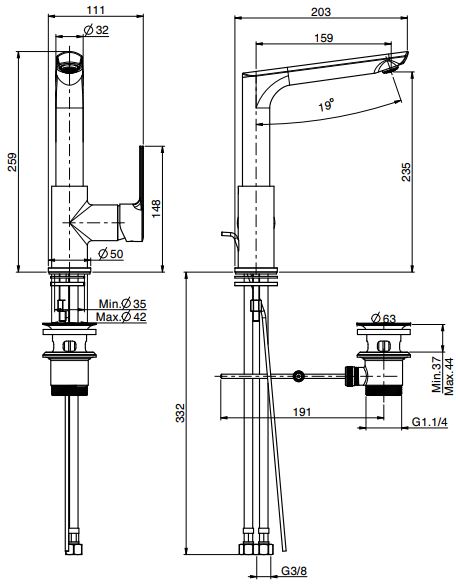 | Монтаж | На горизонтальную поверхность (раковину, столешницу, борт ванны, биде) |