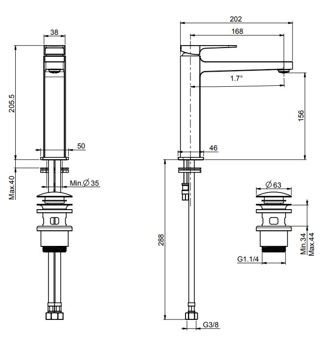 • донный клапан click-clack 1``1/4 с переливом