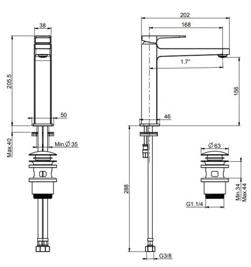 • излив 168 mm