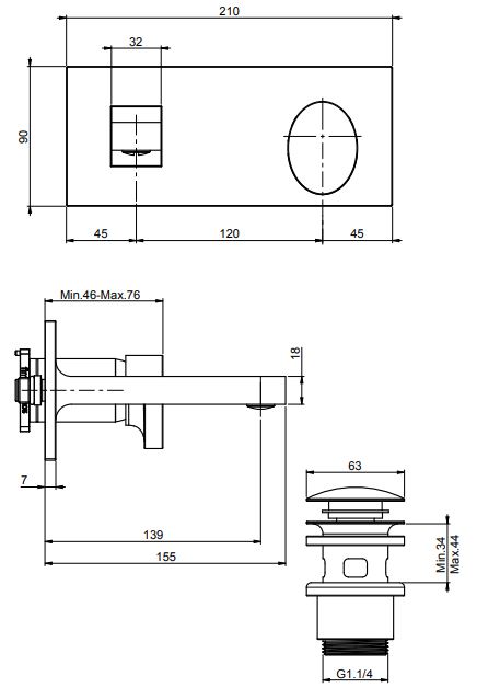 • донный клапан click-clack 1``1/4 с переливом