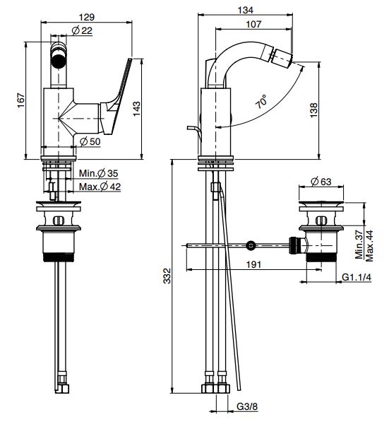 • с двумя гибкими шлангами 370 мм