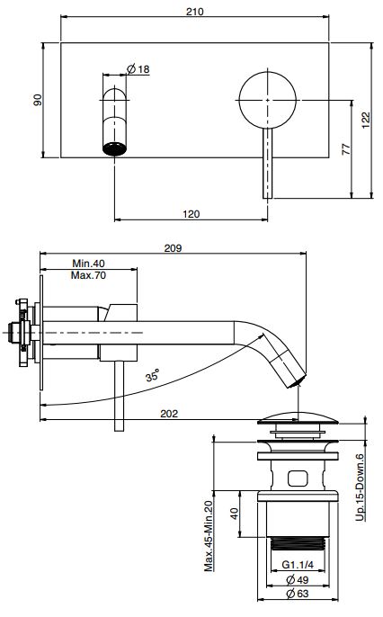 • донный клапан click-clack 1``1/4 с переливом из нержавеющей стали