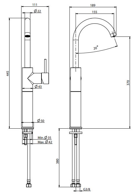 | Отверстия под смеситель | С 1 отверстием |