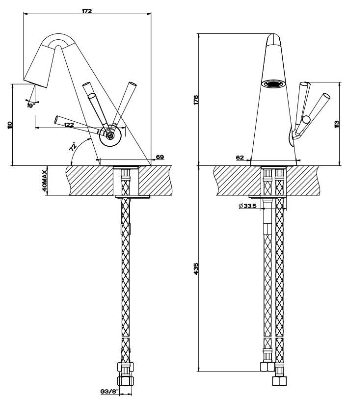 | Монтаж | На горизонтальную поверхность (раковину, столешницу, борт ванны, биде) |