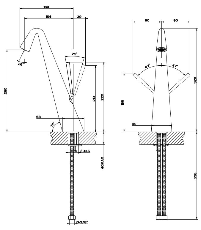 | Монтаж | На горизонтальную поверхность (раковину, столешницу, борт ванны, биде) |