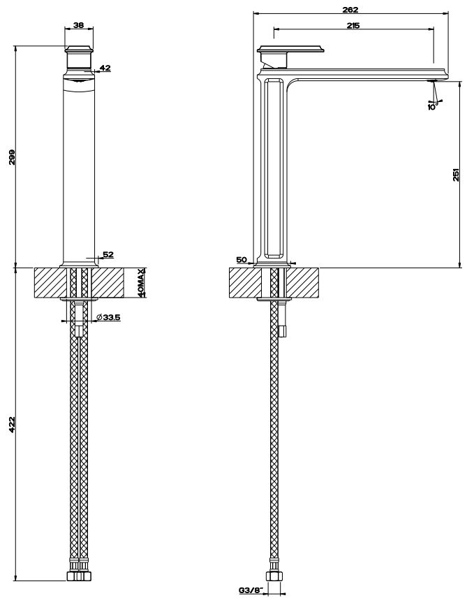 | Монтаж | На горизонтальную поверхность (раковину, столешницу, борт ванны, биде) |