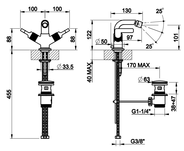 | Монтаж | На горизонтальную поверхность (раковину, столешницу, борт ванны, биде) |