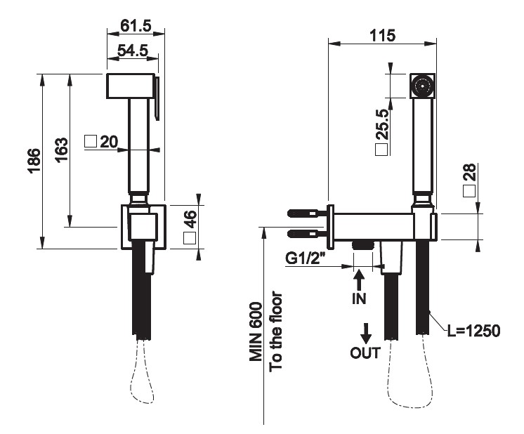| Назначение смесителя | Для гигиенического душа |
