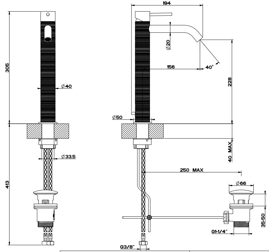 Gessi Trame Смеситель для раковины высокий, соединительные шланги на 3/8”.