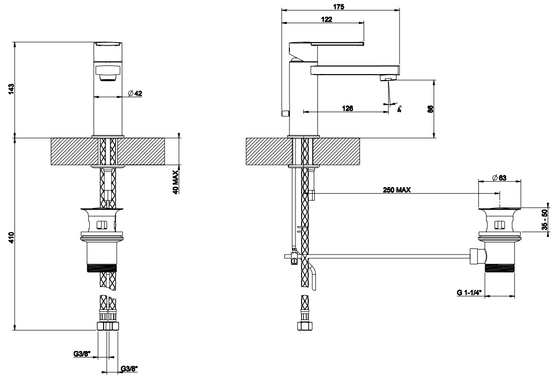 | Монтаж | На горизонтальную поверхность (раковину, столешницу, борт ванны, биде) |
