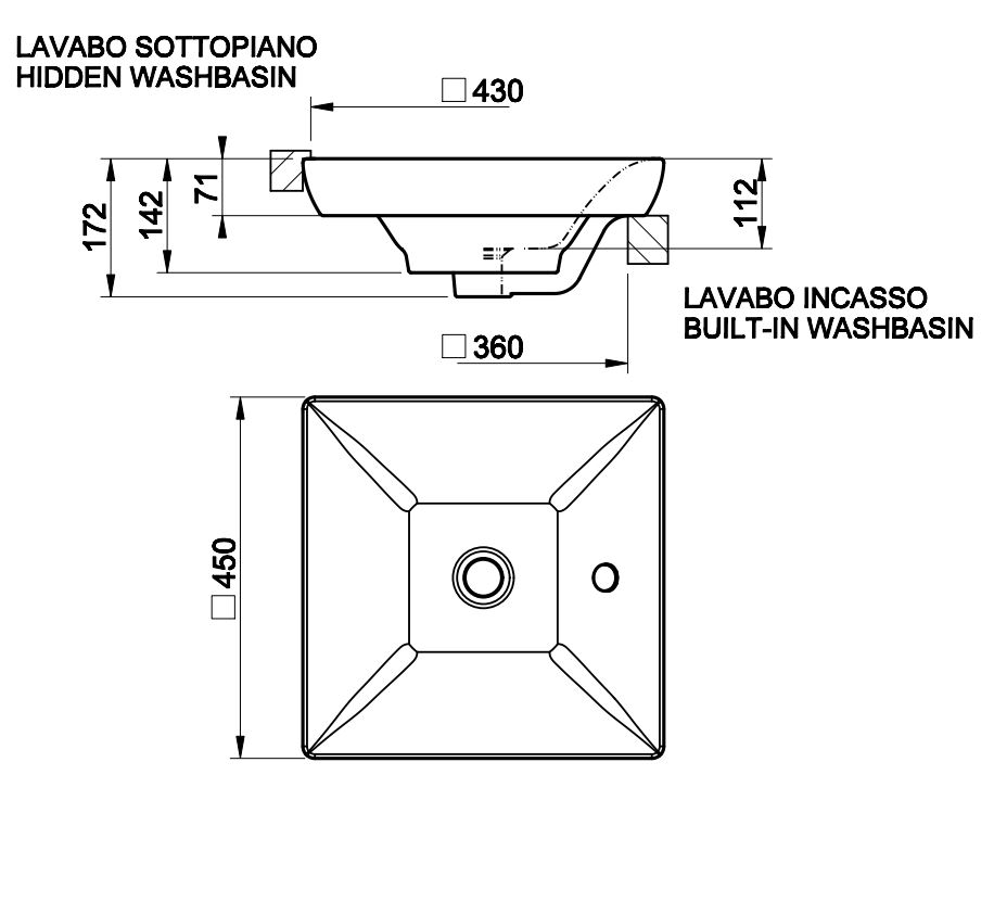 Раковина напольная Gessi Rettangolo 37523 слив в стену 42х42
