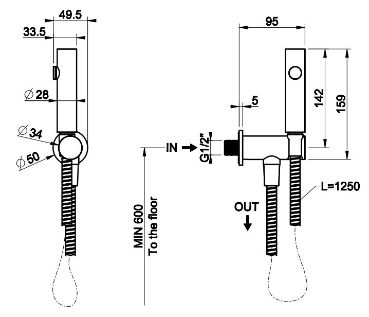 | Назначение смесителя | Для гигиенического душа |