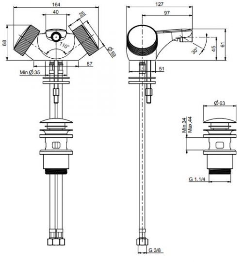 | Отверстия под смеситель | С 1 отверстием |
