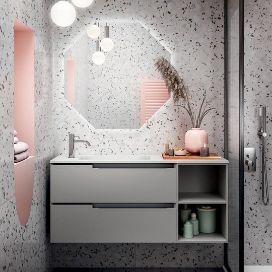 - Благодаря хорошо держащему форму, жесткому на кручение материалу и использованию, в качестве дополнения, формованной передней панели, предусмотрено множество вариантов встраивания, начиная с установки на уровне пола и заканчивая облицовкой кафелем в основании.