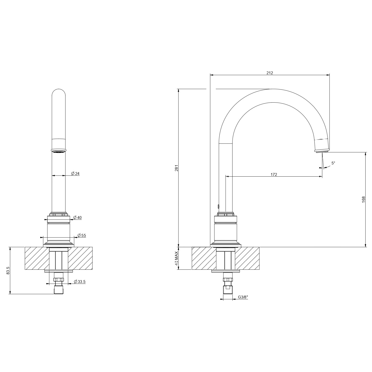 | Монтаж | На горизонтальную поверхность (раковину, столешницу, борт ванны, биде) |