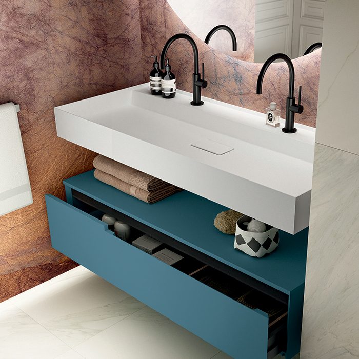 Состав комплекта: OASIS REBEL Раковина 1208х515Х120 мм., с 2 отверстиями для смесителя, без перелива, цвет белый матовый; OASIS PROFILO Тумба 1200х510х270 мм, подвесная, 1 ящик левый, цвет Cobalto матовый; OASIS Столешница 1200х515х12 мм., цвет Cobalto матовый.