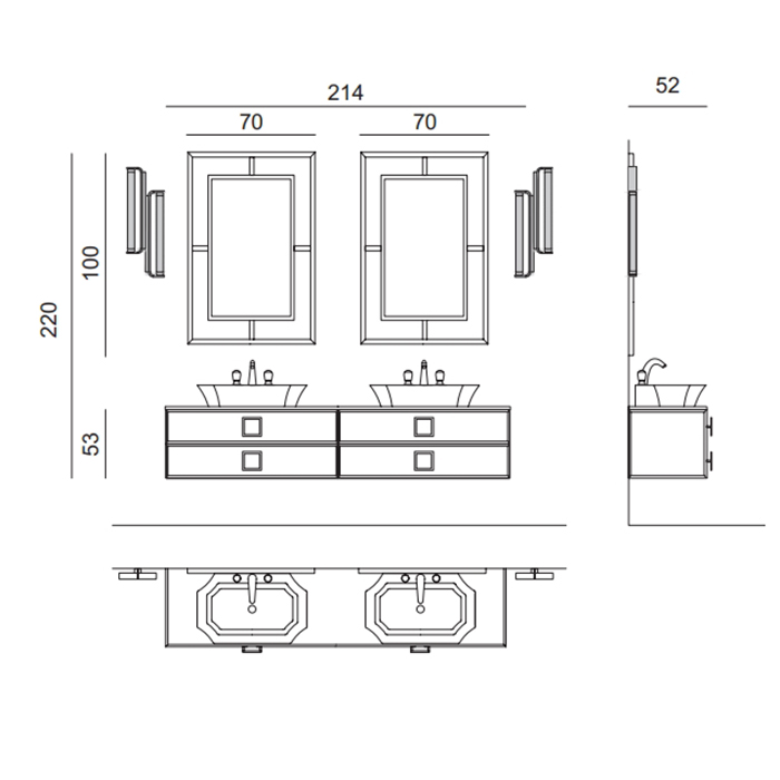Состав комплекта: OASIS DAPHNE Тумба под раковину 1050х525х500 мм., подвесная, 2 ящика, отделка Saffiano vetro decorato; OASIS Раковина 700х480х140 мм., для установки на столешницу, с 3 отверстиями для смесителя, цвет белый.