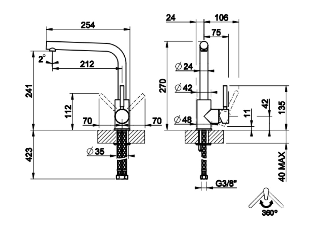 Монтаж На горизонтальную поверхность (раковину, столешницу, борт ванны, биде)