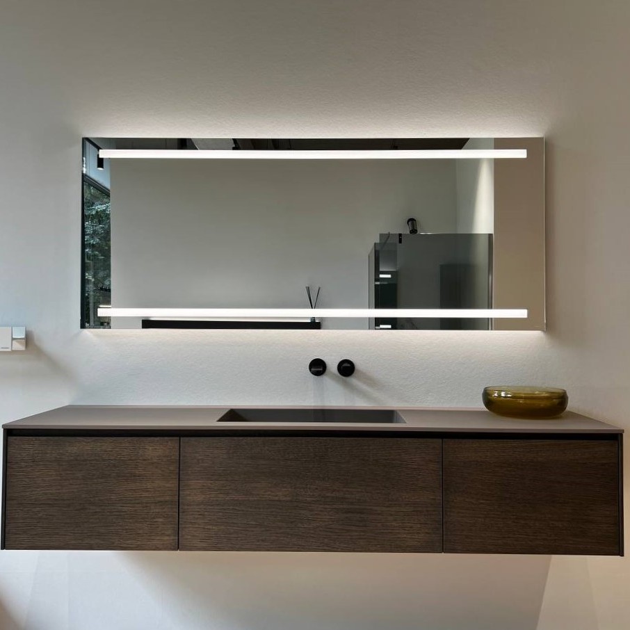 Этот комплект идеально подойдёт для ванных комнат в стиле минимализм или модерн. Его строгие линии и элегантное оформление делают его стильным и функциональным решением для современных интерьеров, где важна эстетика и удобство в использовании.
