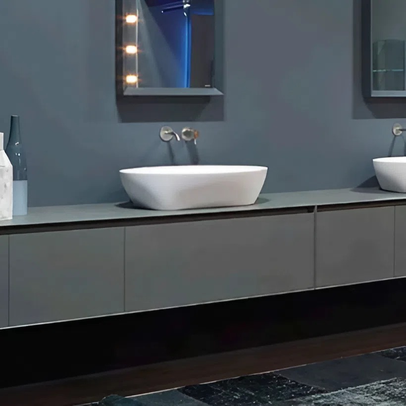 Серый оттенок мебели вводит ноту утонченности и сдержанной элегантности, делая ванную комнату источником гармонии и стиля. Каждая деталь комплекта PANTA REI продумана до мелочей, чтобы обеспечить комфорт и удобство в использовании.