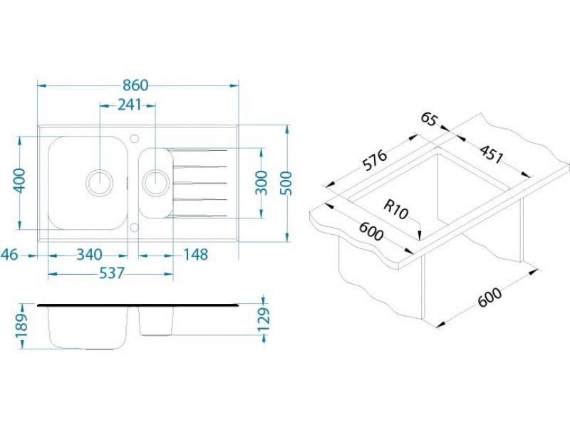 | Тип раковины | Встраиваемая сверху |