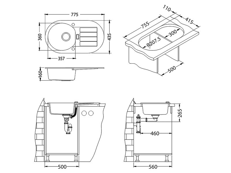 Тип раковины Встраиваемая сверху