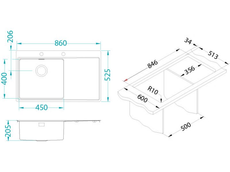 | Тип раковины | Интегрированная |