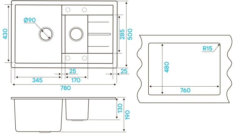 | Тип раковины | Встраиваемая сверху |