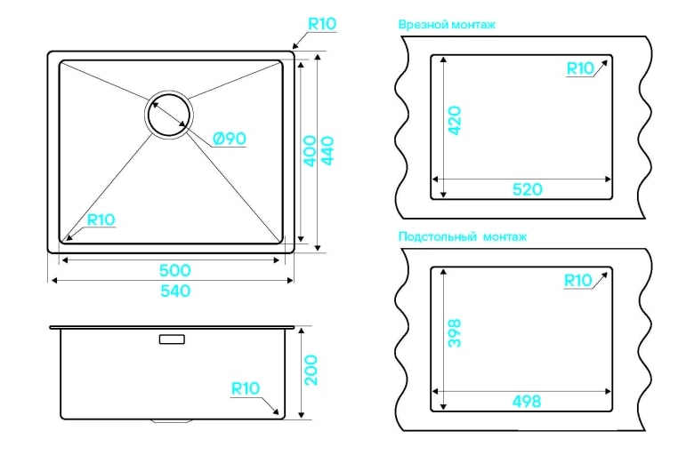 Тип раковины Встраиваемая снизу
