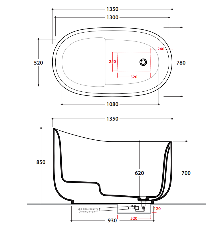 | Расположение слива | В ногах |