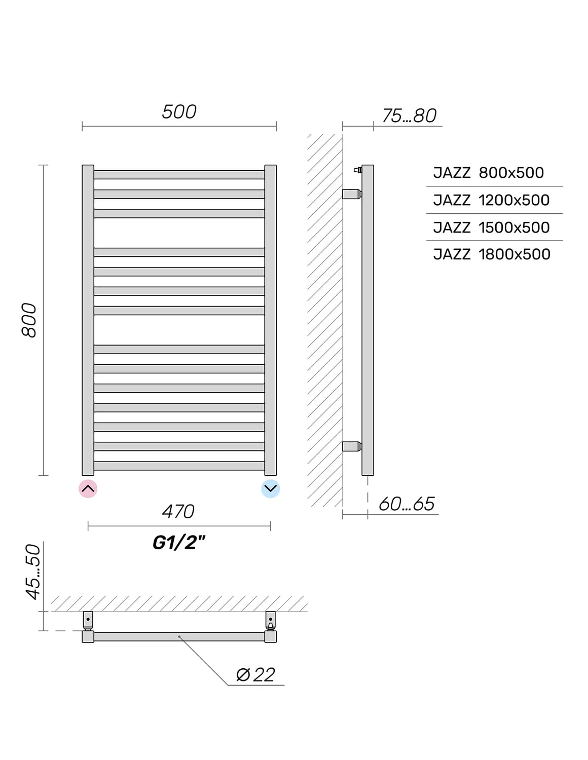 | Подключение водяного полотенцесушителя | Нижнее |