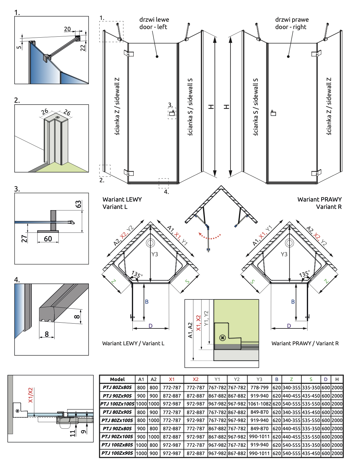 | Монтаж | В угол |